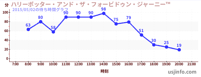 • ハリーポッター・アンド・ザ・フォービドゥン・ジャーニー™$B$N(B2015年05月02日の待ち時間
