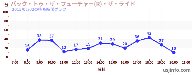• バック・トゥ・ザ・フューチャー(R)・ザ・ライド$B$N(B2015年05月02日の待ち時間