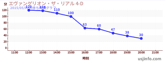 • エヴァンゲリオン・ザ・リアル 4-D$B$N(B2015年05月02日の待ち時間