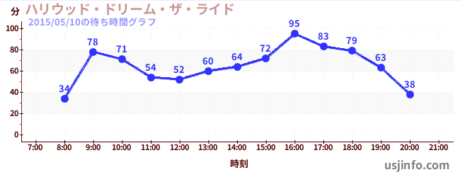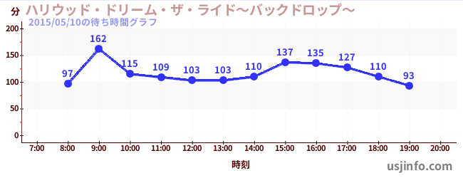• ハリウッド・ドリーム・ザ・ライド$B$N(B2015年05月10日の待ち時間