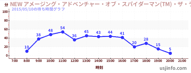• NEW アメージング・アドベンチャー・オブ・スパイダーマン(TM)・ザ・ライド 4K3D$B$N(B2015年05月10日の待ち時間