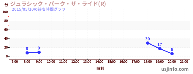 • ジュラシック・パーク・ザ・ライド(R)$B$N(B2015年05月10日の待ち時間
