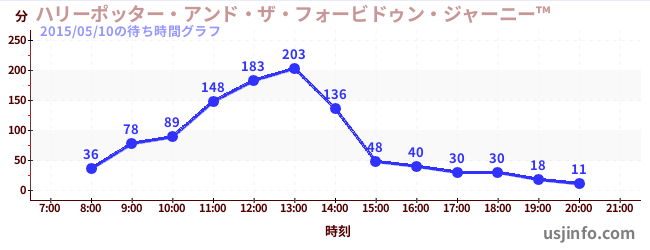 • ハリーポッター・アンド・ザ・フォービドゥン・ジャーニー™$B$N(B2015年05月10日の待ち時間