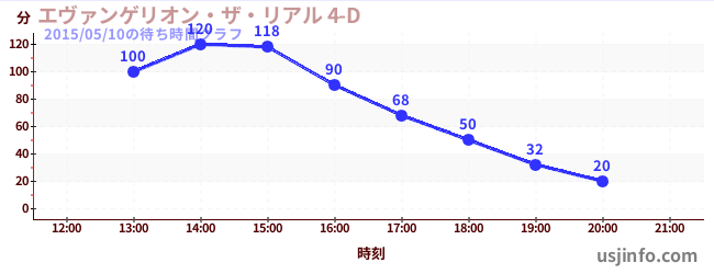 • エヴァンゲリオン・ザ・リアル 4-D$B$N(B2015年05月10日の待ち時間