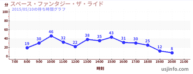 • スペース・ファンタジー・ザ・ライド$B$N(B2015年05月10日の待ち時間