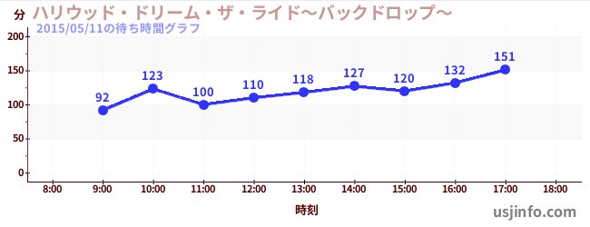 • ハリウッド・ドリーム・ザ・ライド〜バックドロップ〜$B$N(B2015年05月11日の待ち時間