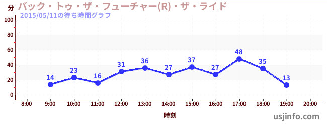 • バック・トゥ・ザ・フューチャー(R)・ザ・ライド$B$N(B2015年05月11日の待ち時間