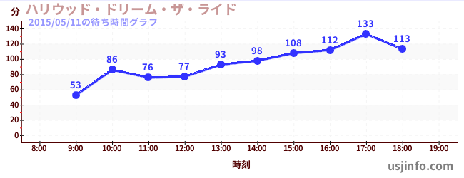 • ハリウッド・ドリーム・ザ・ライド$B$N(B2015年05月11日の待ち時間