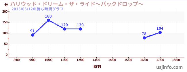 • ハリウッド・ドリーム・ザ・ライド〜バックドロップ〜$B$N(B2015年05月12日の待ち時間