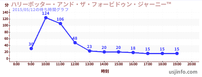 • ハリーポッター・アンド・ザ・フォービドゥン・ジャーニー™$B$N(B2015年05月12日の待ち時間