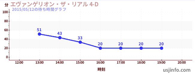 • エヴァンゲリオン・ザ・リアル 4-D$B$N(B2015年05月12日の待ち時間