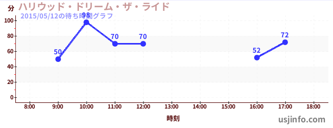 • ハリウッド・ドリーム・ザ・ライド$B$N(B2015年05月12日の待ち時間