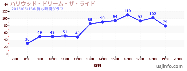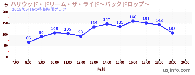 • ハリウッド・ドリーム・ザ・ライド〜バックドロップ〜$B$N(B2015年05月16日の待ち時間