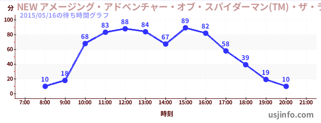 • NEW アメージング・アドベンチャー・オブ・スパイダーマン(TM)・ザ・ライド 4K3D$B$N(B2015年05月16日の待ち時間