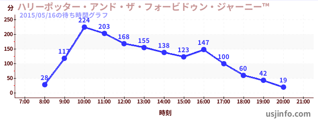 • ハリーポッター・アンド・ザ・フォービドゥン・ジャーニー™$B$N(B2015年05月16日の待ち時間