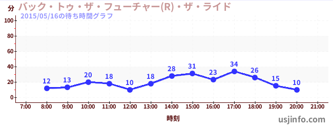 • バック・トゥ・ザ・フューチャー(R)・ザ・ライド$B$N(B2015年05月16日の待ち時間