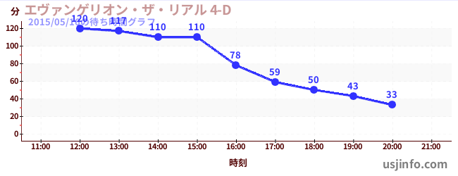 • エヴァンゲリオン・ザ・リアル 4-D$B$N(B2015年05月16日の待ち時間