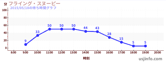 • フライング・スヌーピー$B$N(B2015年05月18日の待ち時間