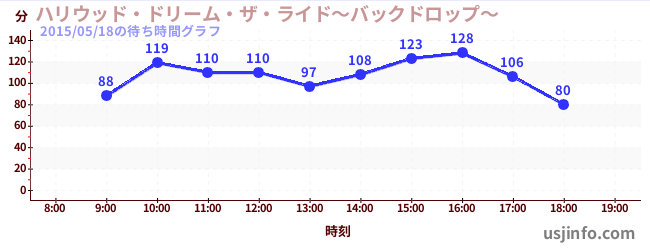 • ハリウッド・ドリーム・ザ・ライド〜バックドロップ〜$B$N(B2015年05月18日の待ち時間