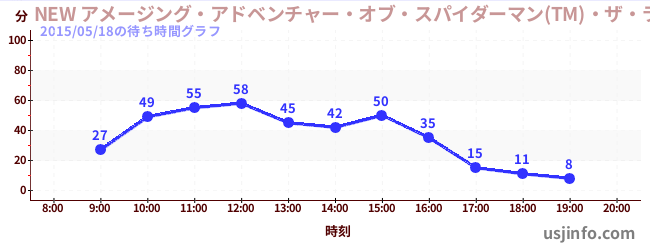 • NEW アメージング・アドベンチャー・オブ・スパイダーマン(TM)・ザ・ライド 4K3D$B$N(B2015年05月18日の待ち時間