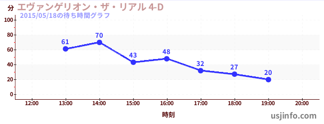 • エヴァンゲリオン・ザ・リアル 4-D$B$N(B2015年05月18日の待ち時間