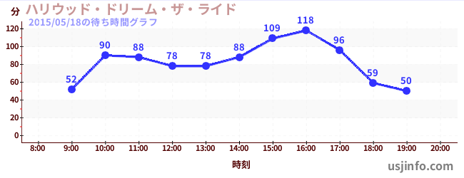 • ハリウッド・ドリーム・ザ・ライド$B$N(B2015年05月18日の待ち時間