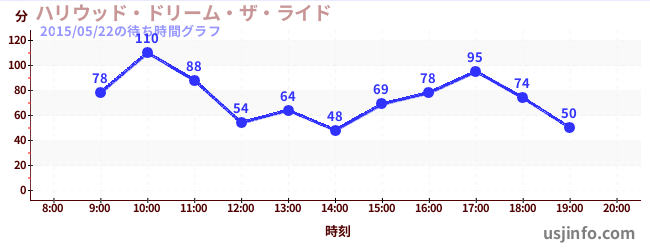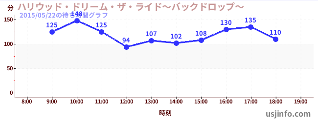 • ハリウッド・ドリーム・ザ・ライド〜バックドロップ〜$B$N(B2015年05月22日の待ち時間