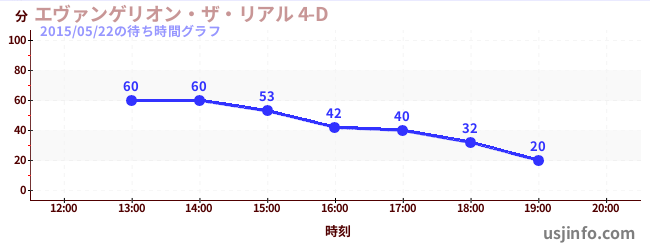 • エヴァンゲリオン・ザ・リアル 4-D$B$N(B2015年05月22日の待ち時間