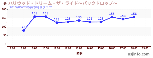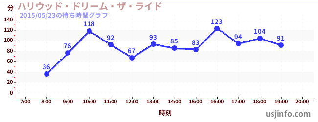 • ハリウッド・ドリーム・ザ・ライド〜バックドロップ〜$B$N(B2015年05月23日の待ち時間