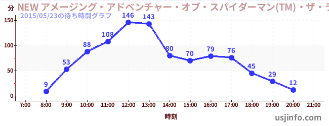 • NEW アメージング・アドベンチャー・オブ・スパイダーマン(TM)・ザ・ライド 4K3D$B$N(B2015年05月23日の待ち時間