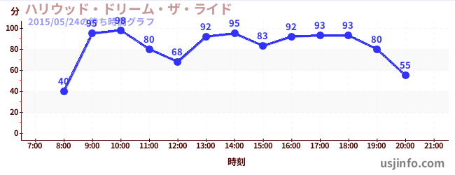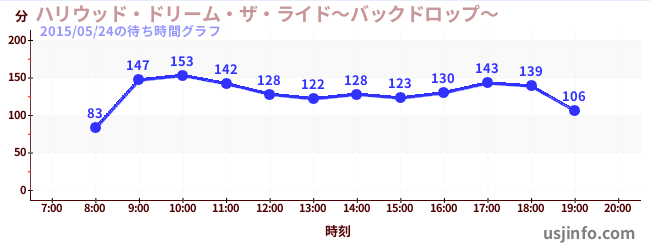 • ハリウッド・ドリーム・ザ・ライド〜バックドロップ〜$B$N(B2015年05月24日の待ち時間