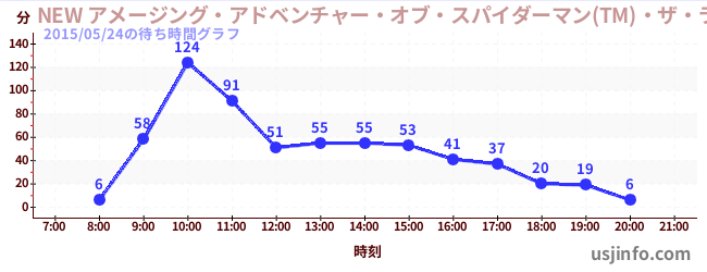 • NEW アメージング・アドベンチャー・オブ・スパイダーマン(TM)・ザ・ライド 4K3D$B$N(B2015年05月24日の待ち時間