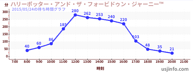 • ハリーポッター・アンド・ザ・フォービドゥン・ジャーニー™$B$N(B2015年05月24日の待ち時間