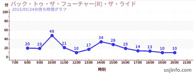 • バック・トゥ・ザ・フューチャー(R)・ザ・ライド$B$N(B2015年05月24日の待ち時間