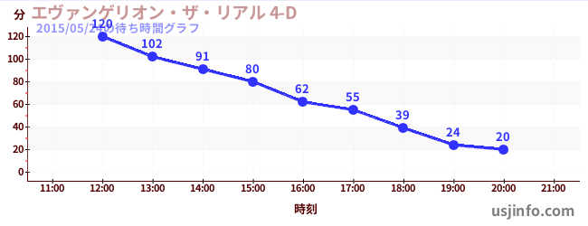 • エヴァンゲリオン・ザ・リアル 4-D$B$N(B2015年05月24日の待ち時間