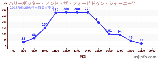 • ハリーポッター・アンド・ザ・フォービドゥン・ジャーニー™$B$N(B2015年05月25日の待ち時間