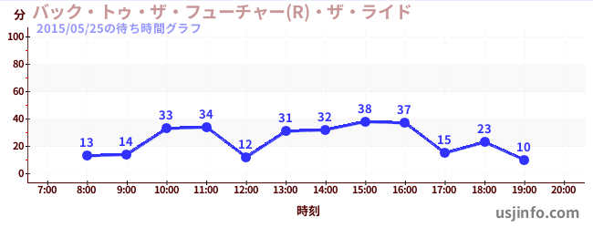 • バック・トゥ・ザ・フューチャー(R)・ザ・ライド$B$N(B2015年05月25日の待ち時間