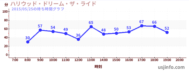 • ハリウッド・ドリーム・ザ・ライド$B$N(B2015年05月25日の待ち時間