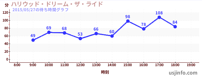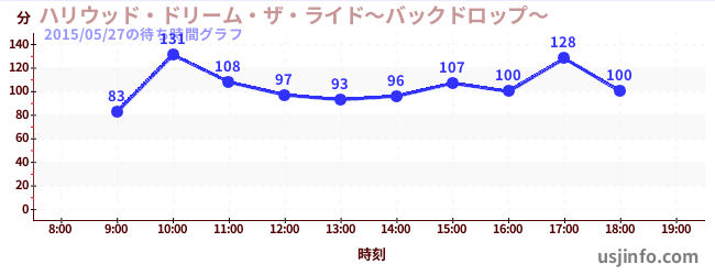 • ハリウッド・ドリーム・ザ・ライド〜バックドロップ〜$B$N(B2015年05月27日の待ち時間