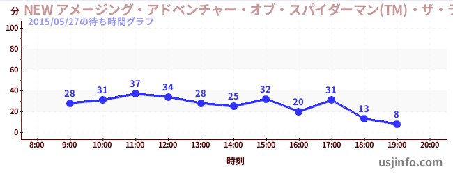 • NEW アメージング・アドベンチャー・オブ・スパイダーマン(TM)・ザ・ライド 4K3D$B$N(B2015年05月27日の待ち時間