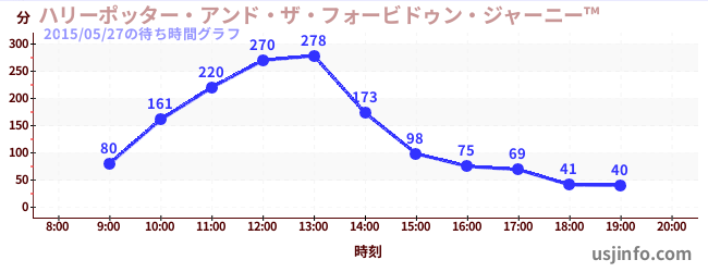 • ハリーポッター・アンド・ザ・フォービドゥン・ジャーニー™$B$N(B2015年05月27日の待ち時間