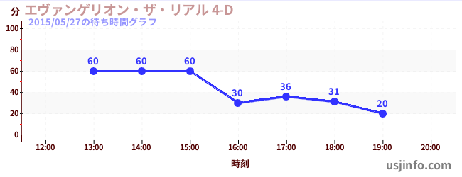 • エヴァンゲリオン・ザ・リアル 4-D$B$N(B2015年05月27日の待ち時間