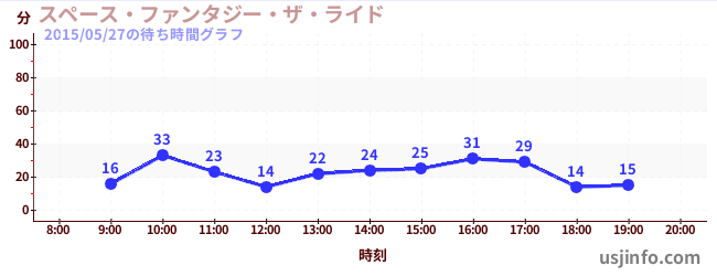 • スペース・ファンタジー・ザ・ライド$B$N(B2015年05月27日の待ち時間