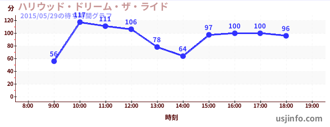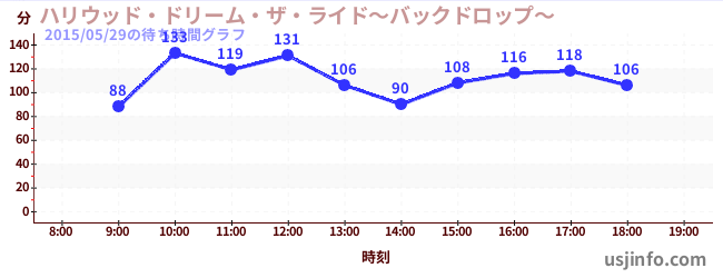 • ハリウッド・ドリーム・ザ・ライド〜バックドロップ〜$B$N(B2015年05月29日の待ち時間