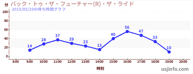 • バック・トゥ・ザ・フューチャー(R)・ザ・ライド$B$N(B2015年05月29日の待ち時間