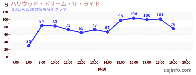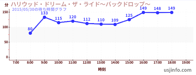 • ハリウッド・ドリーム・ザ・ライド〜バックドロップ〜$B$N(B2015年05月30日の待ち時間