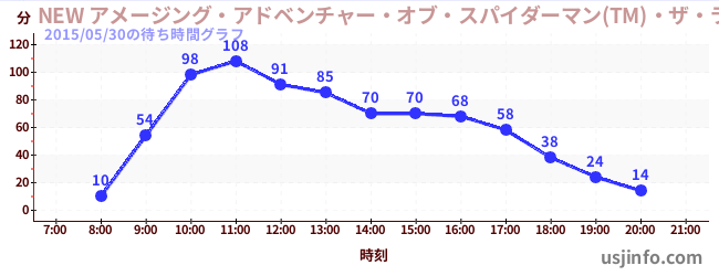 • NEW アメージング・アドベンチャー・オブ・スパイダーマン(TM)・ザ・ライド 4K3D$B$N(B2015年05月30日の待ち時間