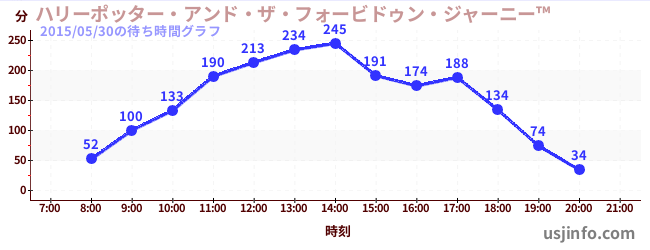 • ハリーポッター・アンド・ザ・フォービドゥン・ジャーニー™$B$N(B2015年05月30日の待ち時間