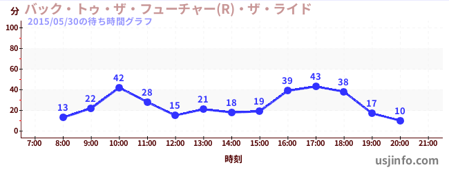 • バック・トゥ・ザ・フューチャー(R)・ザ・ライド$B$N(B2015年05月30日の待ち時間