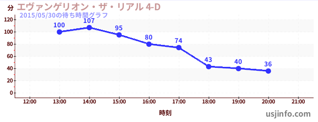 • エヴァンゲリオン・ザ・リアル 4-D$B$N(B2015年05月30日の待ち時間